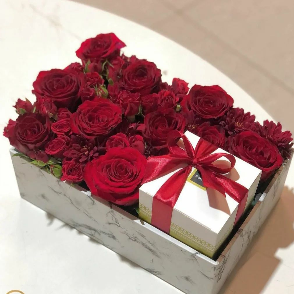 - نوع و تعداد گل : 10 شاخه رز هلندی + 15 شاخه رز مینیاتوری + 5 شاخه داوودی